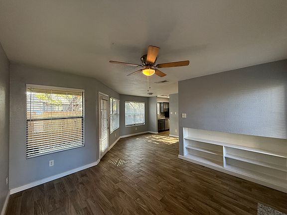 Unique 3 bedroom/2.5 bathroom unit with an attached one-car garage! Spacious living room with a fireplace and a built-in bookshelf. Updated kitchen with granite countertops and stainless steel appliances, including a fridge! A very large dining area. Master bathroom downstairs has an oversized closet and en-suite bathroom. The other 2 bedrooms are upstairs, with shared bathroom. NO CARPET! Washer and Dryer connections in the garage! The unit has a very private fenced backyard. Owner pays for water, tenants to reimburse landlord $75 per month. 12+ months.