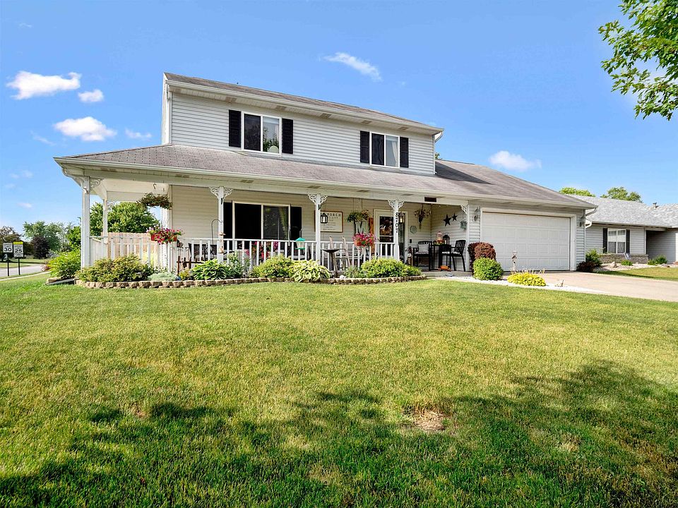 This home has space and in the southwest school district! This home has been updated since these owners took over it's care. Updating items around the home and adding to the storage space, including but not limited to: privacy fence, doors, windows, shelving and flooring in the attic, plus some of the mechanicals have been updated in recent years. Approaching this home the first thing to notice is the HUGE wrap around front porch and amazing landscaping around the home. Continuing around the outside you can't help but notice the privacy fenced back yard and the specialty outdoor lighting! When you walk into the home, You will see the first of two living spaces on the main floor. Updated painted white cabinets, back splash, some newly appointed lighting greet you as you walk into the kitchen, where all appliances stay! The second living space is off the kitchen and boasts a beautiful fire place! Also on the main floor you will see the half bath, dining area, and great patio door to the outdoor space. Upstairs you find the 4 bedrooms and 2 full bath rooms. Amazing blinds and window treatments all stay with the home.