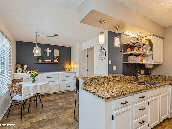 Step into this stunning, move-in-ready home, perfect for those who appreciate style and modern conveniences. This home boasts numerous updates that enhance both its aesthetic appeal and functionality. The main level features beautiful LVP flooring throughout the living room, half bath, and kitchen. The granite countertops are a highlight. The kitchen includes an eat-in dining area with built-in cabinetry for extra storage, quartz countertops and soft-close drawers. Just off the kitchen, you'll find your private courtyard with a newer cement patio and easy access to your 2-car detached garage. Upstairs, there are two large bedrooms with feature walls and ample storage. The full bath has been updated with new flooring, vanity, and mirror. The finished lower level offers a cozy family room and the storage/laundry room. Over the past few years, numerous updates have been made, including landscaping, a new sump pump, interior painting throughout, decorative board and batten molding, a stained fence, updated main floor bathroom lights and mirrors, new exterior doors, ceiling fans in the bedrooms, painted kitchen cabinets with additional cabinetry, new dishwasher, and carpet upstairs. The community offers a swimming pool and tennis/basketball courts. Up to 2 pets are allowed with no weight restriction. Don't miss this one!