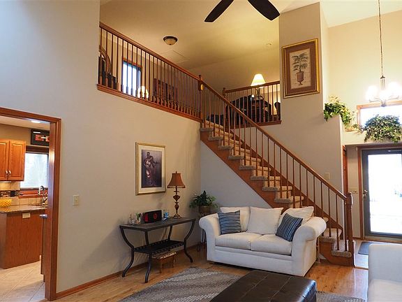 Outstanding! This home is a 10 and feels like a parade home. Enjoy the 4 season room looking out to the tree lined beautiful views. Finished daylight lower level. HVAC system 2016. 3 full baths! Ceramic Foyer. Wood Laminate GR, hall and Master en suite. 2 story ceiling in great room with skylights and brick (gas log ) fireplace. Huge open loft perfect for TV room, play room or many possibilities. Gorgeous remodeled kitchen complete with granite, under mount sink, ceramic back splash, high end stainless appliances. Walk in laundry room. Comfortable dining area with bay windows. 4 season room perfect for the 4th living space. Over sized master en suite has wood floors, walk in closet, unique window and skylight. MB has jetted tub/shower combo. 6 panel doors.