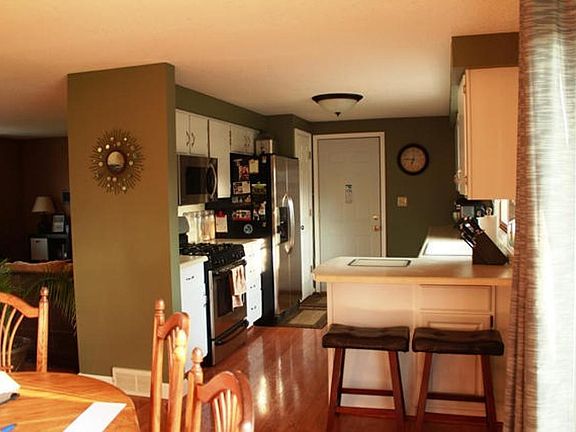 This gorgeous home just needs someone to move in! The bedrooms are large with 2 baths up and a 1/2 bath down. Stainless appliances make the kitchen complete. The basement needs a little TLC to be the perfect (wo)man cave w/full size windows for legal sleeping rooms! Wood burner was professionally installed, but can be removed. Don't forget the huge yard (almost a 1/2 acre) and deck off the dining room patio doors that is almost as long as the house! Gorgeous mature trees for added privacy.