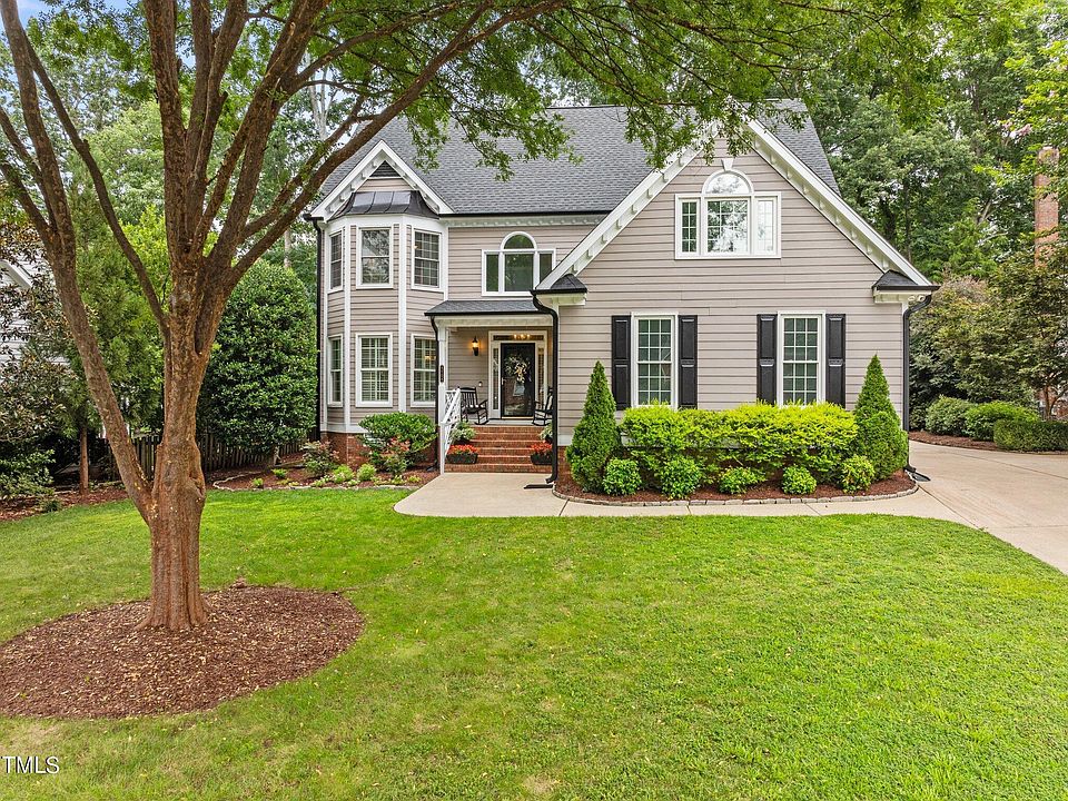 Nestled in a cul-de-sac in a PRIME location, this stunning 5-bedroom, 3.5-bath home offers the perfect blend of elegance and functionality. The entry foyer leads you into a living room and a formal dining room. The kitchen offers wonderful cabinet space, granite countertops, and a tile back splash it flows into an expansive and inviting family room with custom built-ins and a gas fireplace. The sunroom has beautiful skylights. This home offers laundry areas on both the 1st and 2nd floor. The exceptional primary suite with a tray ceiling includes a spa like bathroom with vaulted ceilings, a tiled shower, and a whirlpool tub. The third story bedroom offers an en-suite bathroom. The dedicated office space offers a peaceful environment. Enjoy a fenced private backyard with a large patio, perfect for outdoor gatherings, or unwinding after a long day. Situated in a highly sought-after area, this property is just steps away from the Baileywick Greenway Trail, offering easy access to walking paths. Don't miss the opportunity to make this exceptional home yours.