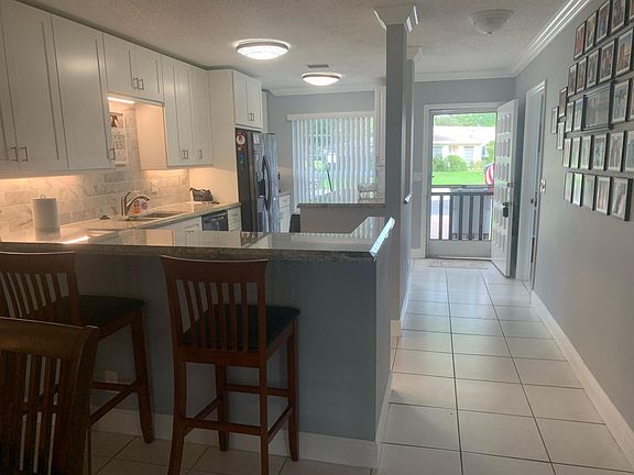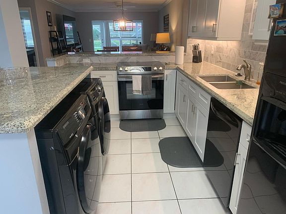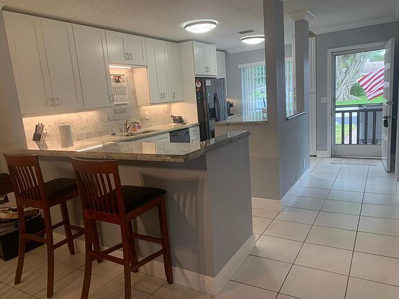 Corner unit on huge property. This 2/2 has been completely remodeled. Complete new kitchen, new bathrooms new roof, new A/C new hurricane windows etc. Enjoy view of the water from your screened patio. Two shopping centers within one block of front gate. Close to turnpike and I-95