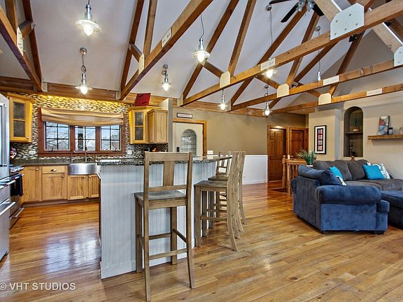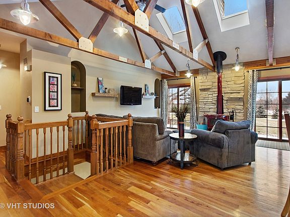 OPEN CONCEPT LIVING AT ITS BEST! Exposed beams and vaulted ceilings with skylights introduce this light & bright ranch located in Sundial Farms of Spring Grove. Hardwood floors and custom built-ins run throughout the main level. The updated kitchen is nicely equipped with a large island with breakfast bar, new stainless steel appliances, farmhouse sink, and granite counters accented with a sharp tile backsplash. The master suite offers access out to the patio, and features a huge walk-in closet, and master bath with Jacuzzi tub, custom his & her sinks, and a grand separate shower. The lower level with exterior access shows off a fabulous recreation room, spacious bar area, full bath, TONS of storage space and an additional bedroom ideal for an in-law suite. The home rests on one acre with brick-paver hardscaping and professional landscaping ready to greet you in spring!