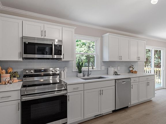 Beautiful renovated home with tons of upgrades and just minutes from downtown Raleigh with a private country setting! Updated kitchen with new shaker cabinets, quartz countertops, tile backsplash and stainless steel appliances. Remodeled bathrooms with new custom vanities and granite tops. New engineered wood plank floors throughout the main areas and new plush carpet upstairs and in the bedrooms. New stainless hardware and brushed nickel throughout. Freshly painted with smooth ceilings. New back deck overlooking a private wooded backyard. NEW HVAC, WINDOWS AND GUTTERS.