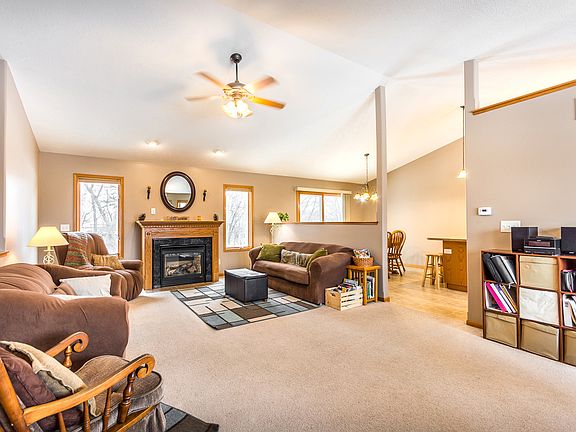 HUGE House, Over-sized Garage, Beautifully Wooded Ravine Lot with Creek. Custom built in 2005, this is an open concept ranch-style, vaulted ceiling home with split bedrooms. Approximately 3,700 square feet, this home has 4 bedrooms, 3.5 baths, main floor laundry, and 36-inch-wide doors throughout. The master bedroom includes a large walk-in closet and private bathroom with dual sinks. The living room is complete with a gas fireplace and extra dining room area. The kitchen boasts plenty of cupboard space and a pantry, plus a dining area that overlooks the wooded ravine. The partially finished ICF basement includes 2 egress windows, full bathroom, the 4th bedroom, tons of storage, dual-entry staircases to upstairs living and to the garage, plus a saferoom in the event of inclement weather. Landscaping includes in-ground sprinkler system and wooded backyard. Home comes equipped with a radon mitigation system, a 92.1% high-efficiency furnace, and a water softener. Please call for a private viewing today - 701-373-5992.