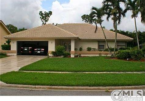 Beautiful open feel with great layout, high vaulted ceilings, stacked bedrooms, refurbished kitchen with granite and custom cabinetry,2 pantries, master suite with spacious walk in closet, tumbled marble shower. Secondary BR w/walk in closet with shelving. Plantation shutters, crown molding, private and serene pool patio area backing to Boca Lago Golf course, Low HOA fees in the 24 hr. manned community, great location near Turnpike; A rated schools and shopping! Home has hurricane shutters throughout. Newer Gutters, Newer electrical panel, Laundry room inside. Information is deemed to be reliable, but is not guaranteed