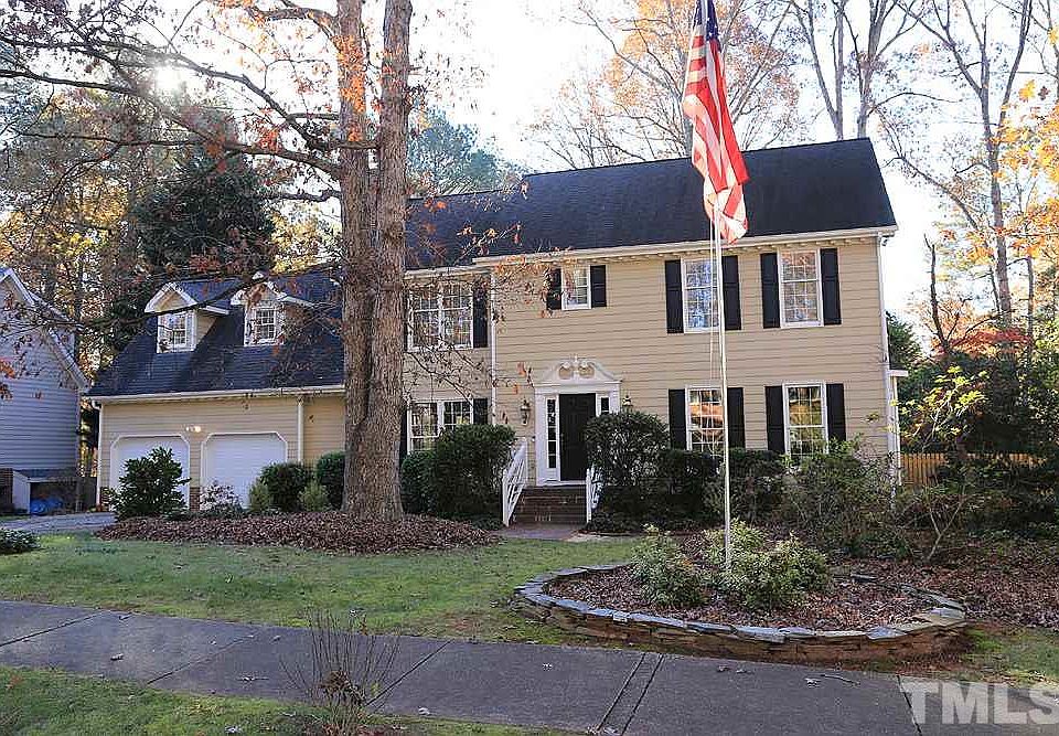 Classic Traditional Two story on a quiet street in the heart of N Raleigh - 9 ft ceilings on main level - Island kitchen w/ hardwood floors - Bay window in dining rm - Masonry fireplace -Spacious bonus rm with backstairs & wet bar - Updated master bathroom w/ tile shower - Quality of construction is evident throughout - UF walk up attic - Covered gazebo off of the deck overlooks the fenced in backyard oasis - Level .41 acre lot is extensively landscaped w/ garden areas, stone walls, & private areas
