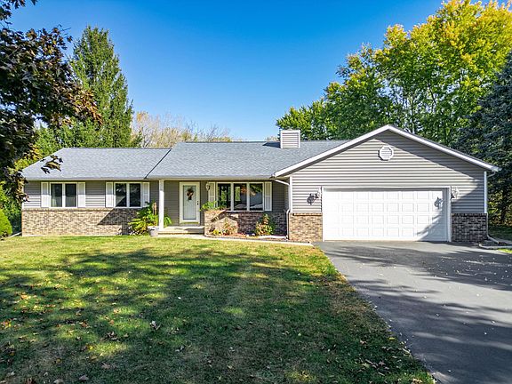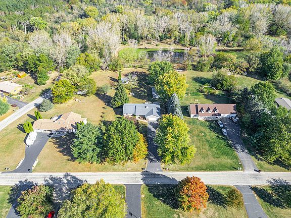Serene Ranch Retreat with Expansive Garage Space and tranquil pond views. Welcome to this charming ranch home nestled in a picturesque rural setting. This spacious property is perfect for those seeking peace, privacy, and plenty of room to roam. The beautiful stone wall and cozy wood-burning fireplace in the great room create a warm and inviting atmosphere, flowing seamlessly into the dining area. The generously-sized galley kitchen offers ample cabinetry and countertop space, newer flooring is perfect for cooking and entertaining. The kitchen opens to a sunny dining area and a sitting space with sliders leading to a large deck, making it an ideal spot for relaxing or outdoor gatherings. There is also the convenience of a main-floor laundry room. The three spacious bedrooms include a primary suite with a private ensuite bath. The full basement offers an office space, plenty of storage, and endless possibilities for customization to suit your needs. A 2 1/2 car attached garage provides convenient parking, while the additional detached 3-car garage and large shed with a covered porch area add even more versatility. This is a rare find for those seeking a blend of rural charm, modern amenities, and exceptional space.