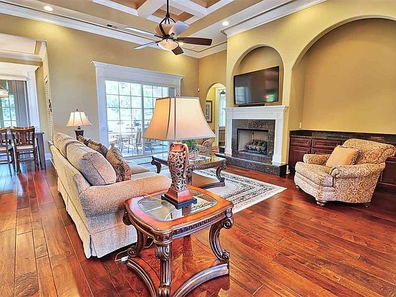 Welcome home !! This is fabulous lakefront 3bedroom, 2.5 bath with dedicated office space and bonus room. This property is located in the prestigious Plantation Lakes community in Carolina Forest and shows like a model home. Outside of the house is stucco and stone. From the moment you enter this custom-built grand home, you will be greeted with premium upgrades, crown molding in all rooms, hardwood floor which runs throughout the house and quality you will not find anywhere else. On your left is a very spacious dining room. On your right is office with built in upper and lower cabinets, granite counter-tops. This open floor plan flows into living room and kitchen. Kitchen boasts large beautiful granite island, stainless steel appliances, granite counters, wine rack, custom built cabinetry which offers tons of cabinet and counter space. Living room is very spacious with high coffered ceilings and fire place. Large master bedroom with hardwood floors, tray ceilings, fireplace with a granite surround and large separate sitting room, which leads to screened in porch area. Master bath features double sinks with granite counters, large oversized walk in closet and steam walk in shower with large granite bench, rain shower, body sprays, dual shower head and dual hand held shower heads. Other 2 bedrooms located across the living room are very spacious and share a full bath. Also, located upstairs is bonus room, spacious laundry room with title floors which leads to 2 car garage with built in shelving and storage room. Kitchen leads to screened in porch area which has easy breeze windows with a hot tub and a fireplace with stone surround. The backyard of this home boasts an outdoor kitchen, boat dock and breath-taking lakefront sitting area with power and water hook up. The lake extends through out the beautiful Plantation Lakes community. This is your chance to take advantage of all that Plantation Lakes has to offer, lake front living, and world class amenities which incl