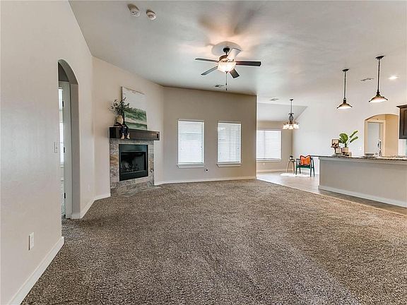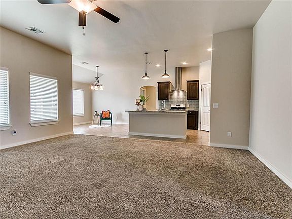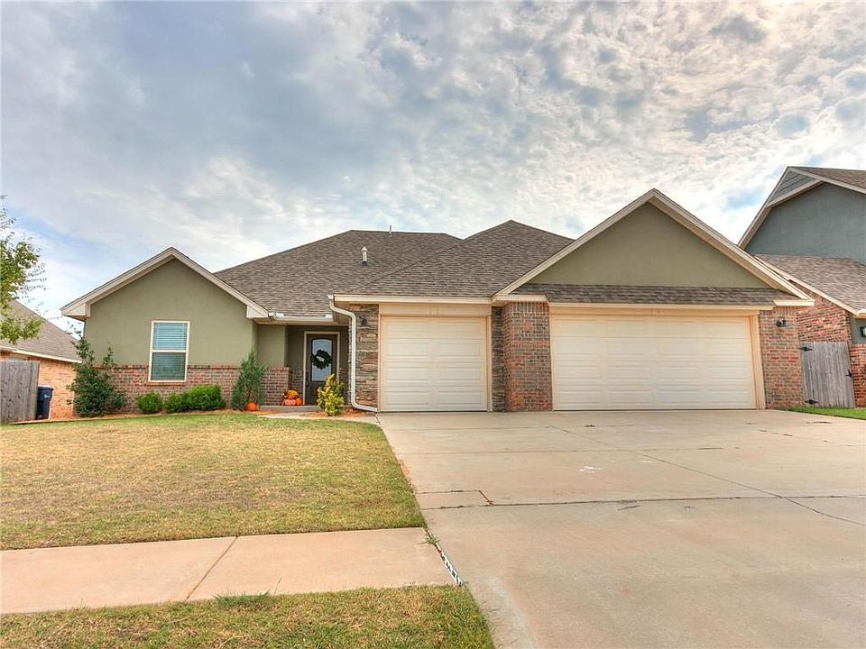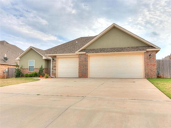Fantastic four bedroom home located in the Mustang School District. You will love the location of this home, with easy access to Highway 152 and the turnpike. This home feature four bedrooms, two bathrooms and a large open concert Family/Kitchen/Dining area. Kitchen features SS appliances and built-in microwave. Primary Suite features dual vanities, separate shower/tub and large walk in closet. Two of the guest bedrooms are on the opposite side of the home from the Primary and the other bedroom is at the front of the home and would make a great office. Interior paint has been recently refreshed, carpet has been cleaned as well. There is also a large three car garage, separate laundry area (not a walk through from the garage), and also a tankless hot water tank.