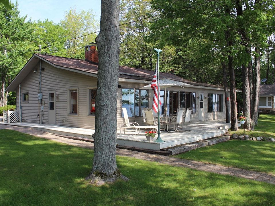 Very well kept home on 183 feet of hard packed Douglas Lake Frontage. This home is situated on two waterfront lots, and includes a third lot that could either be sold or kept as a buffer. Air conditioning and in ground sprinkler system are two nice features that will make this cottage an enjoyable place to spend your summers. Inside the house you will find a cozy fireplace, as well as a sun room and spacious master suite. In addition to the two car garage, there is a large pole barn across the street on an additional lot, which is a great place to store your toys.