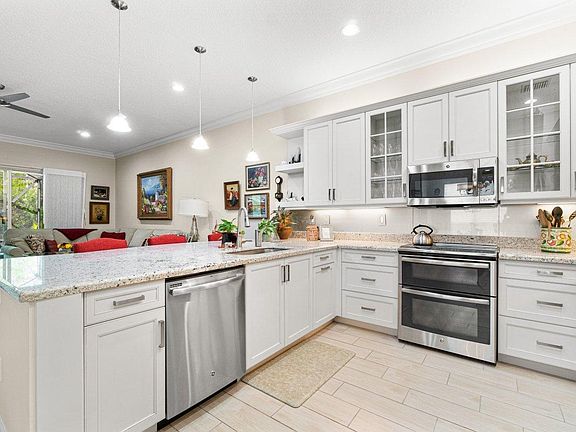 This immaculate ready to move in Rebecca model features 2 bedrooms plus a den, 2 baths and an open floor plan. Fabulous private screened porch with extended patio. Extensive upgrades include: Tile throughout (no carpet), a large gourmet kitchen with granite counter tops and natural wood frosty white cabinets, ''California style'' closets, additional recessed lights, high end fixtures and window treatments, HVAC UV Light, Portable Generator hook-up, Gutters, crown molding, garage storage system and much more. HOA Fee includes lawn care, alarm monitoring, cable and Internet. (3rd bedroom is a den).