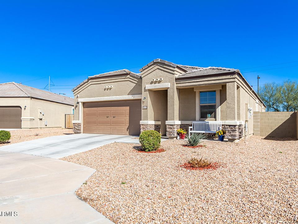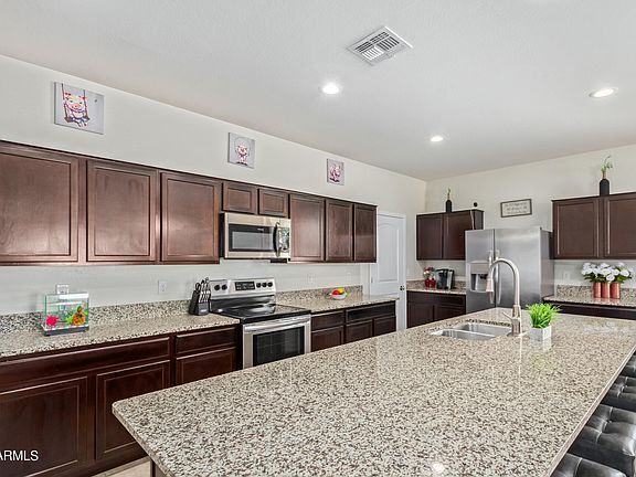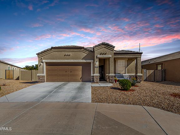 Seller offering $5K towrds buyers costs. Spacious 3 bed, 2 bath single-level home features great room floor plan that everyone loves! Oversized sliding patio doors lets in plenty of natural light. Chef's kitchen has large granite Island, espresso cabinets, stainless steel appliances and huge walk in pantry. Neutral tile t/o main living area. Primary suite is split away from other bedrooms for privacy. You will love the enormous closet! Builder widened doors a few inches in most rooms and 0 stairs to enter home from garage to accomadate wheel chair. Oversized yard has space to add RV gate and Pool. $159 Solar Lease with seller recieving credit back from APS anually Extra solar panels were added to accomadate pool. Smart Home includes: Panel, Garage Door, Lights, Video Doorbell, Door Lock