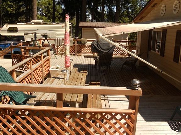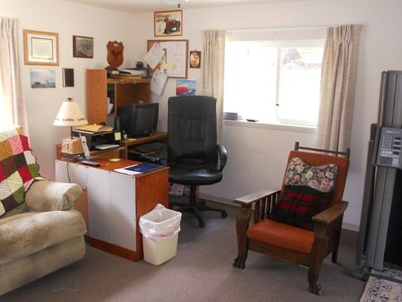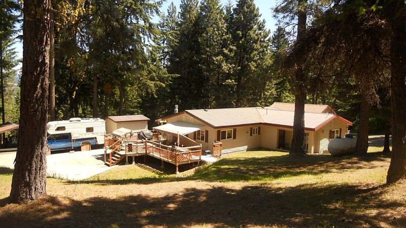 Very cute Stewart Mountain view home on just over six acres. Gas fireplace, kitchen with eating bar. 3rd bedroom could be used as a rec room or family room. Big cement pad for RV or parking, two out buildings and addition covered spaces. Big deck with awning, 2 car garage. Tons of privacy on all 4 sides. Wooded setting with cleared areas. Located on a dead end street in a quiet community.Great value for this lot size. close to trails, hunting, hiking and biking and to dwon town.