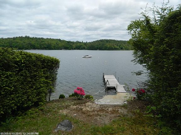 Get ready for summer! Move-in condition. Furniture included. Private waterfront on Sebago Lake Magnificent property boasts cement patio just before your 32' dock. Mooring included. 2 car garage. Great sunny house!