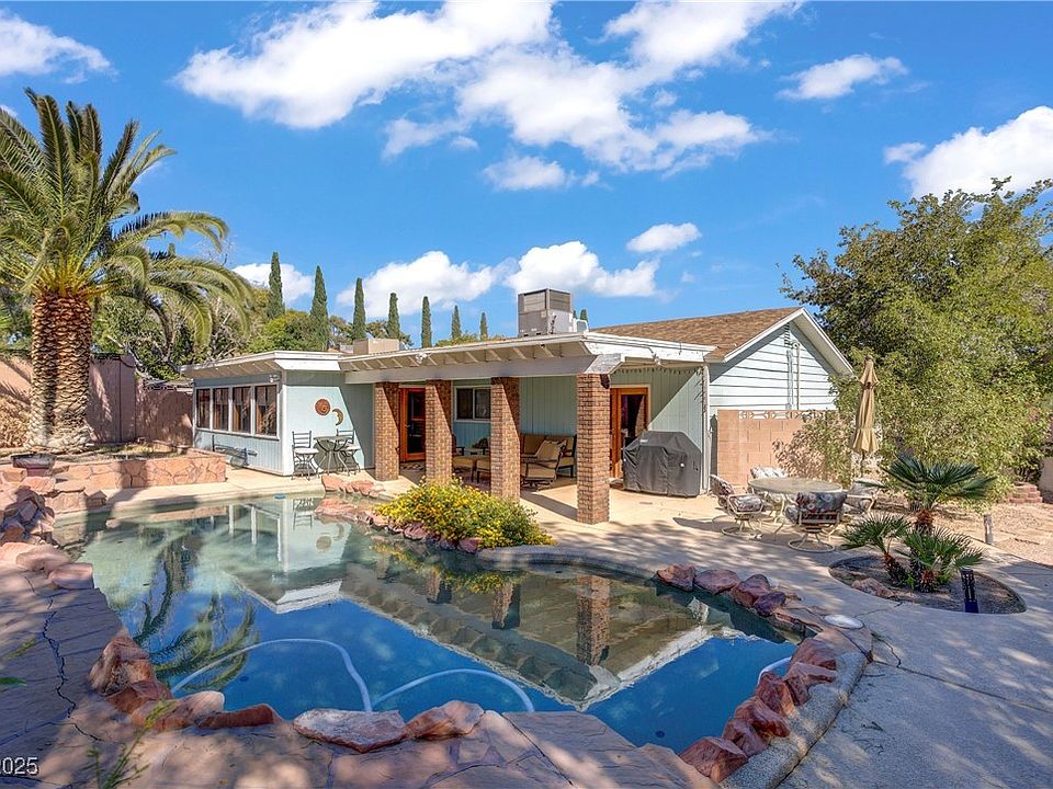 Beautiful & Charming Boulder City Gem! Nestled at the end of a quiet cul-de-sac in the heart of Boulder City, this stunning single-story home is bursting with character and charm! Enjoy a spacious open floor plan featuring 3 bedrooms and 2 full bathrooms, a gorgeous kitchen with granite countertops and an oversized island—perfect for gatherings and everyday living. Step outside to your private backyard oasis complete with a sparkling pool, relaxing spa, and wet bar under an oversized sunroof patio—ideal for entertaining year-round! There is extra driveway space for a small RV or your toys! Don't miss this rare find and schedule your private showing today!