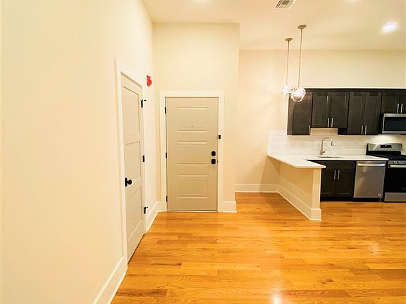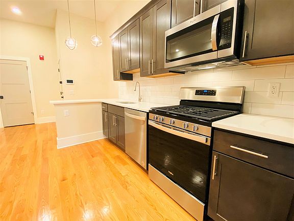 2019 New Construction. Aprox. 950 Square Ft Unit. Natural Light, high ceilings, hardwood floors throughout, living room, kitchen with stainless steel appliances (whirlpool), 5 burner stove, quartz countertop and eat in kitchen island, 2 Bedrooms and 2 Full Baths. Central air, Anderson windows, video intercom monitors, fully sprinklered building, Luxury living with the highest standards including full sized washer/dryer in unit. Roof top deck will be ready in the SPRING! Convenient to NYC! Walking distance to light rail and buses, schools, parks, stores, and worship. Lease Details: 15 month lease, last month FREE (Last month rent compensated by landlord.), security, non-smoking unit and no pets. NO FEES.