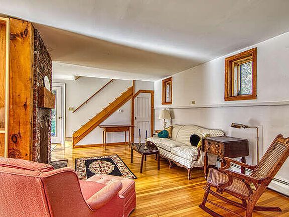 Orland: 871 Castine Road: Quaint year -round home surrounded by vintage lilacs, lupins, established perennials and apple trees on private 3.8 acre lot. House interior enjoys abundant sunlight and open floor plan with wood floors. Primary suite on second floor. Custom built 40 years ago and enjoyed by the original owner. Nearby large barn/garage built with locally sourced wood which provides flexible space for many uses. Desirable mid-coast location, within short distance to Blue Hill, Castine, Bangor and Ellsworth. $319,000.