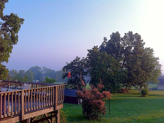 Country Ranch / Raised Ranch Home with top floor fully finished and lower (basement with Walk-out at Grade) floor ~ 2/3's finished. Hardwood floors throughout main level with 3 BR, 1.5 Bathrooms, Living Room, Dining Room, Kitchen and walkouts to rear elevated deck and side covered porch. Lower level consists largely of a wrap-around family room, 1/2 bath and Utility (unfinished) area with furnace, fuel tank, and laundry space along with storage. Lower level exits at grade to backyard, and has windows on three sides of the building.