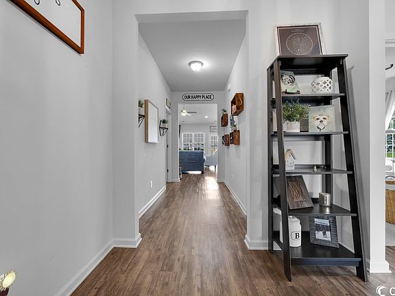 This very well maintained single story 3 bed/2 bath home feels welcoming from the moment you open the door. To the right of the foyer, you will find the two secondary bedrooms along with a full bath. The heart of the home features an open floor plan with tall ceilings, gas fireplace in the spacious living room, well appointed kitchen with large center island and additional dining area off of the kitchen. The primary suite offers plenty of space, tray ceiling, and expansive walk-in closet complete with built-in organization. The backyard offers a covered patio with gorgeous direct views of a pond surrounded by nature. The community of Palm Lakes Plantation is a natural gas community that is centrally located near Hwy 9, minutes from Hwy 31, and a short drive to the beach. This community is close to schools, medical centers, restaurants, shopping, local parks, and more. The HOA includes a community pool, clubhouse, and fitness room.