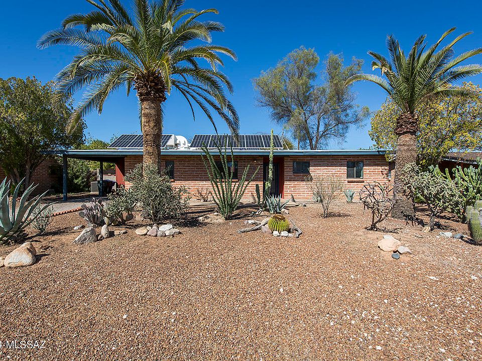 Take a closer look at this mid-town burnt adobe, conveniently located close to the University of Arizona, Salpointe, University Medical Center and the Mountain Bike Path, just to name a few. Large kitchen with separate eat in area featuring lots of cabinets and granite counter tops. Kitchen opens up to the great room skylights and a natural wood burning fireplace, walk right out to the patio and ample rear yard. North facing back yard with a Ramada. Seller owned solar!