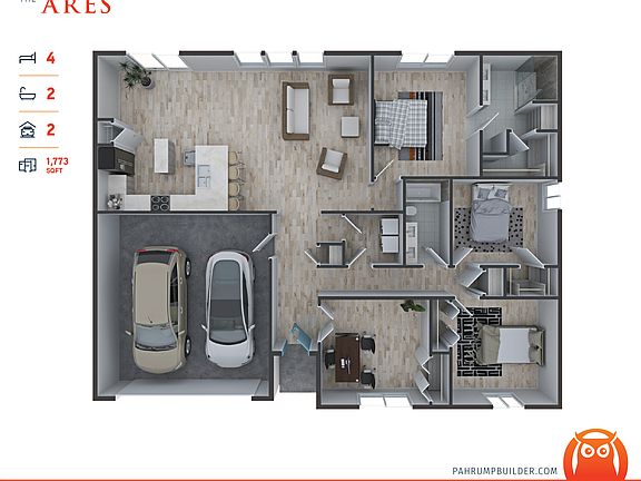Coming soon: The Ares by Homes by Apollo. This 4-bedroom, 2-bath home blends space, style, and convenience with 1,773 sq ft of beautifully designed living area and a 2-car garage. Enjoy an open floor plan perfect for entertaining, a modern kitchen with a large island, and a serene primary suite built for relaxation. Located just a short walk from Pahrump Valley High School yet tucked into a peaceful neighborhood, this new build features desert-friendly landscaping and will be ready to welcome you home in 2025.