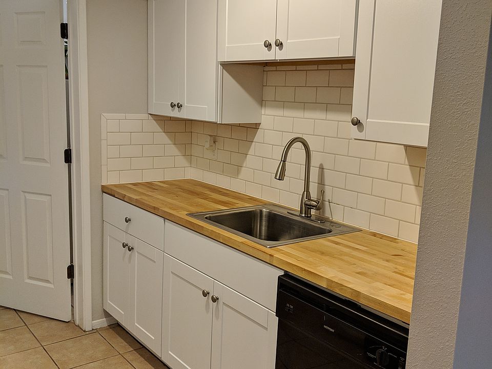 This one won't last long. Beautifully renovated 2BR, 1.5BA townhouse in a great location! This townhouse has been completed renovated from top to bottom, with particular attention to detail - this is a real gem. The vaulted ceilings in the great room create an open concept, complete with a wood-burning fireplace, tile floors, and new paint. The brand-new kitchen includes white shaker cabinets, birchwood butcher block counters, subway tile backsplash, and black appliances. The completely renovated main bathroom has beautiful custom tile in the shower, engineered hardwood floors, and a classy vanity with a deep sink and plenty of storage. Brand new carpet, fresh paint, and beautiful shutters complete the upstairs bedrooms. Last but not least, this townhouse is close to all the amenities, including UofA, the Tucson Mall, St. Phillips Plaza, and more!