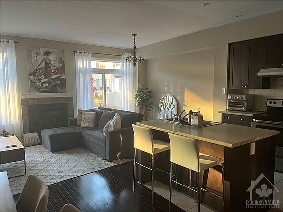 Spacious 3 bed 3 bath townhouse on quiet street in Kanata Lakes. Close to everything, schools, parks and retail all close by. Good access to public transportation and minutes to the Queensway. 1939 sq. ft. including the finished basement, this Grafton model was built in 2013 by Richcraft with neutral, modern finishes. Open concept living room and kitchen is full of natural light from the sliding patio door. Hardwood and tile on the main level. Kitchen is very functional with stainless appliances, huge walk-in pantry and lots of cupboards. Gas fireplace in the living room. Spacious bedrooms, large walk-in closet and ensuite in the primary bedroom and upstairs laundry. Huge window in the basement rec room. Family oriented neighbourhood. Copyright Ottawa Real Estate Board (OREB). All rights reserved. Information is deemed reliable but not guaranteed.
