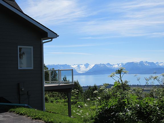 Spectacular custom home on one acre with an unobstructed, incredible view of Kachemak Bay and the Spit. Built in 2003 by Beachy Construction, this 3,702 sq. ft. home has 3 bedrooms, 3 1/2 baths and 2 offices. The living area boasts a vaulted ceiling, gas fireplace, hardwood floors, and soaring windows to take in the view. The master bath features huge walk-in closets and a jetted tub in the