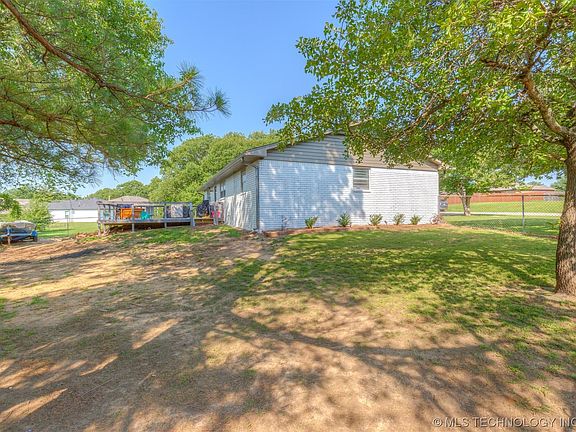 Beautifully updated brick home in a very desirable neighborhood within 5 minutes of Keystone Lake!! New exterior paint 2023. New outside sewer lines replaced in 2023 (new sod to come). Leaf guard, guttering system color matched with the trim for a seamless appearance. Fully fenced in backyard with big double gate side entrance and a brand new back deck in 2023, perfect for entertainment and enjoying those summer nights under the stars! Property does have a storm shelter under the deck, can be accessible if new owners want to cut an access door in the deck. Interior completely remodeled in 2021 with new roof, LVP flooring and carpet in bedrooms, granite countertops, all new cabinets/vanities throughout with soft close abilities plus new walk in shower tile in the oversized primary suite. No more slamming noises!! Wood burning cast iron fireplace in the living room with beautiful built-in's around it-great for showing off decor and family pictures. Laundry/storage room off kitchen and garage entrance with a new custom barndoor (2023) and has access to outside through an additional exterior door to the west side of the property. Located in a USDA loan eligible area Schedule a showing today!!