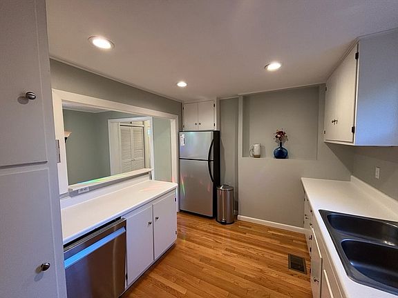 Discover this move in ready 3-bedroom, 1-bathroom home. The house has hardwood floors throughout and a tiled bathroom. Updated stainless steel kitchen appliances and windows. The updated HVAC heat pump ensures efficient heating and cooling year-round. Through the new sliding door is a large back deck that leads into a spacious fenced in back yard with plenty of room for gardening and entertaining. Two large fruiting blueberry bushes reside along the fence. The backyard also has an oversized shed. Whether you are hosting family barbecue or unwinding from work this outdoor space is a true delight. Located minutes from 495 and within a highly sought-after school district, this home offers practicality and charm in a great location.