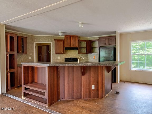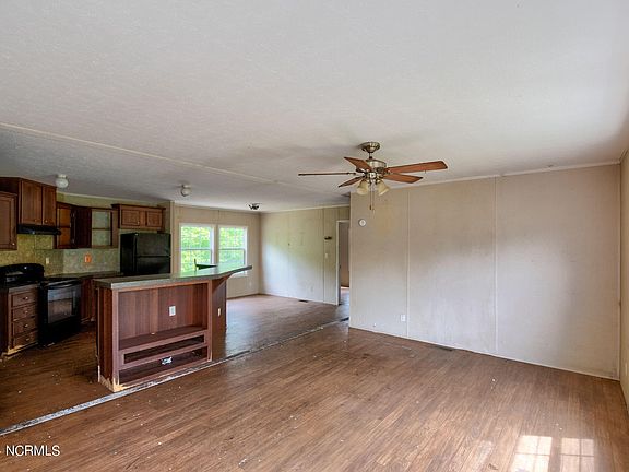 The Carolina countryside can be affordable! Conveniently located between Rocky Point and Burgaw you will find this 2 bedroom, 2 bathroom home on a large lot that is just about an acre. The home offers an open floor plan with the primary bedroom on one side of the house and the second and third bedrooms on the other side. The kitchen layout includes an island with bar level seating and plenty of cabinets. The large lot offers plenty of room for a garden. This home is in need of many repairs and improvements. Every interior surface will require repair or replacement. The mechanicals, septic system, and water system have not been tested. There are two areas where portions of the ceiling were removed.