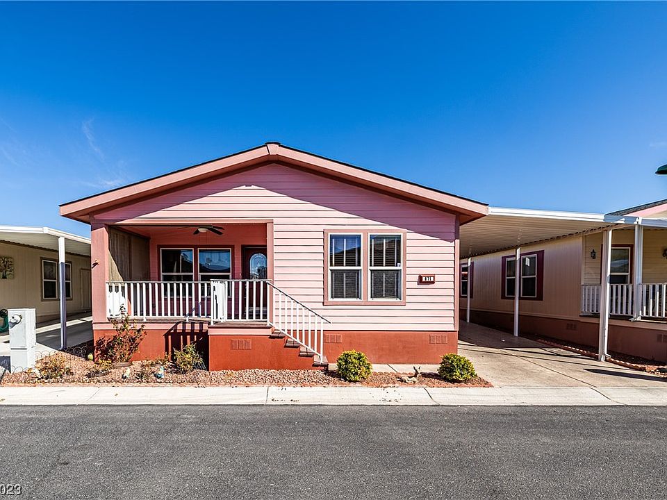 Rare find. Own the lot, no land lease here. This 2 bedroom 2 bathroom with a den and storage shed is the one. Enjoy the peace and quite from your private covered patio. Fruit trees along the side of the home. Epoxy coated driveway. All appliances stay. Clubhouse and private golf course included in this community.