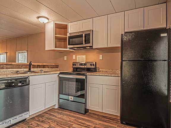 Perfect little getaway from the heat! Remodeled 1 bedroom 1 bath in a cul-de-sac with mature Ponderosa trees on the lot. ready for you to move in. Screened in front porch to sit back and enjoy the cool nights with a fenced in yard so your furry friends can run. In addition to the home it also includes a 1 car garage and a storage shed. Come check it out today!