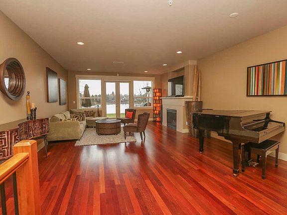 Spectacular water front condo with mountain view. You'll be impressed by this recently painted, updated double master suite condo that has a gourmet kitchen, w/cherry cabs, granite, updated SS gas appliances & Brazilian cherry floors through out the main level. This home has two fireplaces and three decks to help unwind after a long day. Three car garage to store your toys, A/C & a back yard overlooking the river. Master with fireplace, walk in closet, soaking tub, private deck & an amazing view. Enjoy the Christmas ships and fireworks from the comfort of your home. Low HOA's