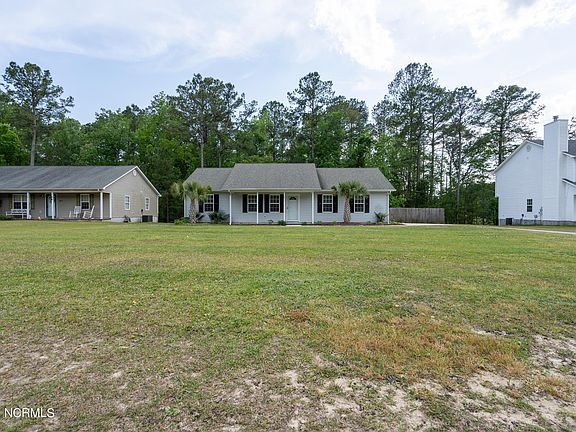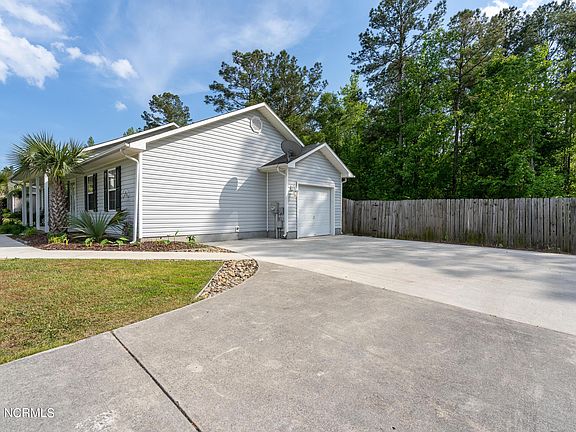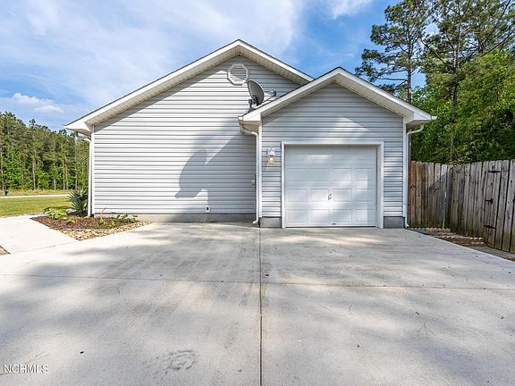 Convenience and comfort meet at 871 Ramsey Rd! When you enter the home, you're greeted by an open concept living space with low maintenance laminate flooring. The living room also features a fireplace with tile surround, perfect for warming up on a cool evening. Beyond the living room is the dining space and kitchen, with stainless appliances, pantry cabinet and tile backsplash. The bedrooms in this floor plan are split. The master bedroom is on the right side of the home and boasts two closets, one of which is a walk in, and a private full bathroom with double vanity and garden tub. On the left side of the home are two more bedrooms and the second full bathroom. If you love being outdoors, then you'll love the large open deck and fenced in back yard, complete with a raised bed planter, swing set, fire pit, and shed for storage. This home also has a garage, large driveway for additional parking, and palm trees for extra charm! All of this is just a short drive to all of the businesses on Western Blvd, Hwy 17 and Gum Branch Rd. Schedule your personal showing today!