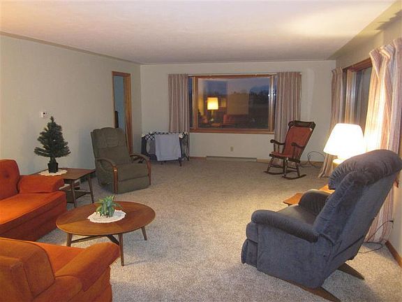 Over 2.5 acres on a country paved road about 7 miles Northeast of Greenville, a great location. Brick and Stone ranch, 3 bedooms, full bath, plastered walls, large kitchen with eating area, appliances included, large living room with large windows over looking the countryside. Large porch like room with laundry area, extra eating area, with lots of windows. Breezeway between home, deck and 1 stall attached garage with opener. Full basement, unfinished, with 1 daylight window. Newer roof, septic and well. Recently refinished hard wood floors in the bedrooms, and home has just been recently insulated. Solid built home. Extra 30 X30 pole barn. Home sits on a hill creating great views in all directions. Seller has just installed new carpeting in the living room and have done several minor re pairs. Home is move in ready.