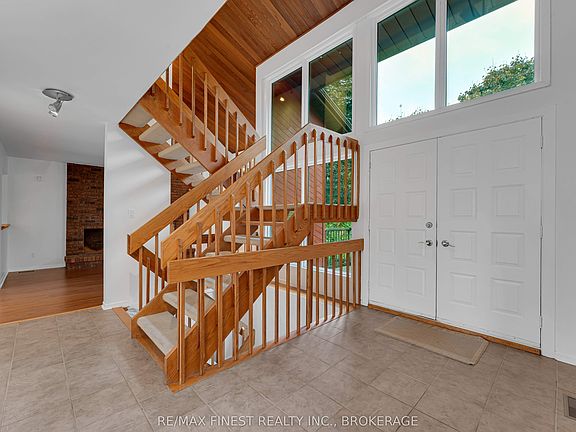 Discover a truly exceptional residence where nature and unique design blend seamlessly to create a one-of-a-kind, four-bedroom home unlike any other. Thoughtfully upgraded and lovingly maintained over the years, this property welcomes you with expansive windows that flood the space with natural light. A central floating staircase stands as a sculptural centerpiece, while the open-concept main floor offers versatile living and family rooms that adapt to your lifestyle. Step from the kitchen onto an elevated deck, descend to the garden below, and find yourself immersed in lush vegetation, with a private path leading to picturesque Collins Creek. Upstairs in addition to the 4 bedrooms, a hidden room awaits -- perfect for a play area or home office --while a spacious bonus room under the garage offers possibilities for a workshop or personal gym. The lowest level features a full-height storage area or cold cellar and a dedicated utility room. This home defies convention, inviting you to imagine and create spaces that suit your vision, rather than asking you to fit into a mold. Take a walk through and let inspiration guide you --opportunities like this are rare, and this remarkable home is ready to become your personal sanctuary. Note: Original architecturally designed house plans and more information about this home are available in the docs sections. Ask your realtor for a copy or email and request one.