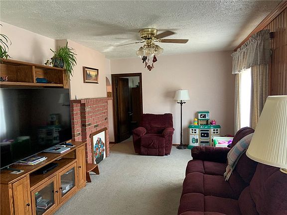 Welcome to this quaint home in Gilpin Township! Trex steps and new railing lead to a covered front porch that is so inviting and includes the swing. Entry with hardwood floors opens to a large living room with decorative fireplace. Kitchen, with oak cabinets and red oak crown molding, and dining room combo makes mealtime easy. Covered deck off of kitchen leads to back yard. Three bedrooms and full bath on the main floor. Full bath has been completely remodeled with quartz ctp. vanity, new flooring and tiled shower/bath. Walkout unfinished basement has two separate access doors and has tons of storage space. Small gameroom provides a great play area. Expansive yard includes garden, shed and grape arbor as well as plenty of room for all of your outdoor entertaining. Newer WH and electrical service panel. Newer windows. Concrete driveway has at least 5 parking spots. Come and see this home today!