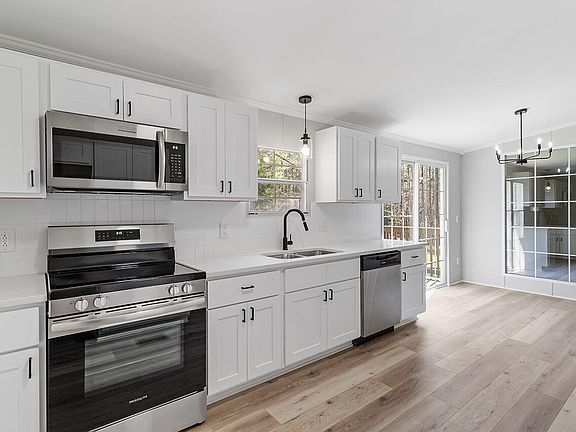 Gorgeous with a bright floor plan and Upgrades galore! Features a designer inspired kitchen with granite countertops, glass tile backsplash and Stainless Steel appliances. Wide plank lvp flooring. PLUSH carpet and NEW interior paint. Beautiful Primary suite with double vanity and HUGE WIC and garden tub. Private 2 acre lot. New HVAC 2024. Convenient to Downtown Sanford and Pittsboro. Move in and enjoy! Staged photos for illustration only, to show homes potential.