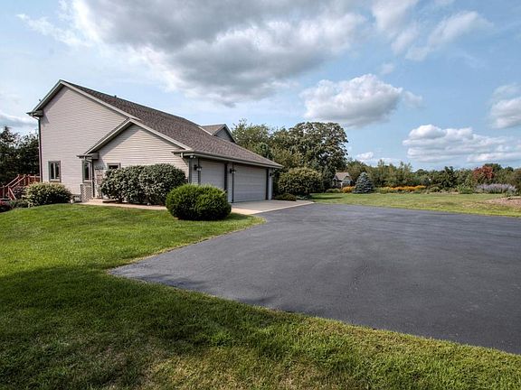 Pride of ownership abounds from the minute you pull in the driveway with professionally landscaped grounds to inside with massive vaulted ceilings in great room, hardwood flooring, solid surface counters, crown molding, huge master suite, sit in the 3 season room looking over the countryside. Full finished lower level with walk out and 9' ceilings. Central vac, wet bar in lower level, massive deck and so much more. Must be viewed to catch all the quality and upgrades.