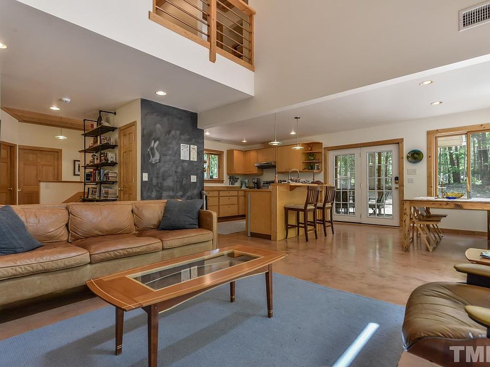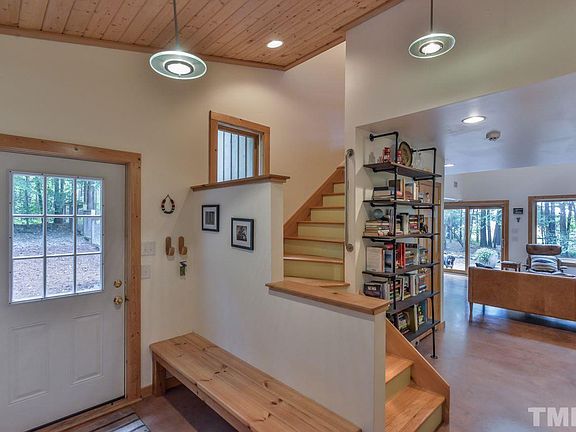 Private, passive solar "Naus Haus" located 5 mins from Saxapahaw & 15 mins from Carrboro, on the Orange County line. This warm, unique, green built home on 2.5 acres has an open floor plan, concrete floors w/ radiant heat, & a wall of windows to let the sunshine in. Quality details such as wood trim throughout, solid wood doors & custom cabinets in the kitchen.You're going to fall in love! Garden beds are ready for fresh plantings & the screen porch is waiting for morning coffee or evening relaxation.