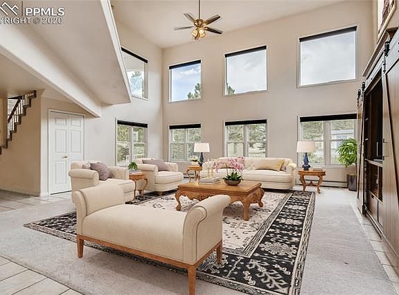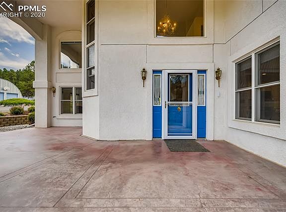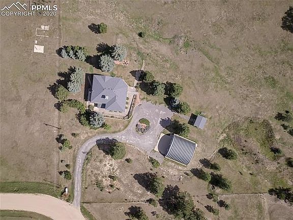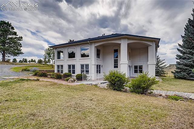 Beautiful Tara inspired home located on amazing five acres of gorgeous bluffs, mature ponderosa, and grassy meadow. Built in 1964 with effective date of 2000 (additions/rebuild/updating), this home features three bedrooms with ensuites, soaring ceilings, formal dining, cook's kitchen with three ovens, newer appliances, walk in pantry, amazing great room with huge windows letting the light in. Two gas fireplaces, private balconies plus a 16x9 sunroom. Main level bedroom plus two upstairs bedrooms and an additional family/loft area. Home is a wonderful retreat located on one of the most beautiful lots in all of Black Forest. Tucked away on a curved road, private, animal friendly with Mountain views plus bluffs. It is definitely a world apart. Spacious living plus multiple patios. The oversized garage also features a work space area plus a 12' with a bay for the Class C motorhome. Garage is 36x37 plus an additional storage building of 12x17 currently a chicken coop. Lots of outside watering and electric plus beautiful landscaping and terracing. This property is so fun and different in its style and will be a joy for its new owner.