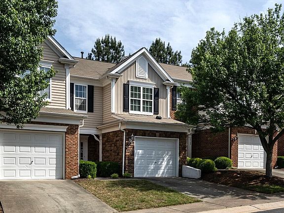 Updated & on trend, spacious, open plan TH ideally located near shopping, dining, parks, RDU & I-40/540! Welcoming entry w/wainscotting. Desirable white kitchen offers tile backsplash, epoxied counters, breakfast bar+pantry. Sep. dining area. Cozy family rm w/designer gas FP wall & access to private rear patio. Spacious tray ceiling owner suite+ensuite bath w/Lg WIC. 2 addt'l bdrms w/hall bath & laundry. Updated lighting+2" blinds throughout. Wood flooring on main! Garage,Comm Pool+HOA covers landscaping!