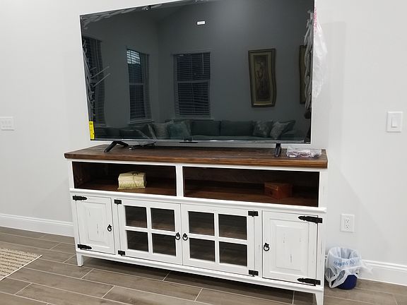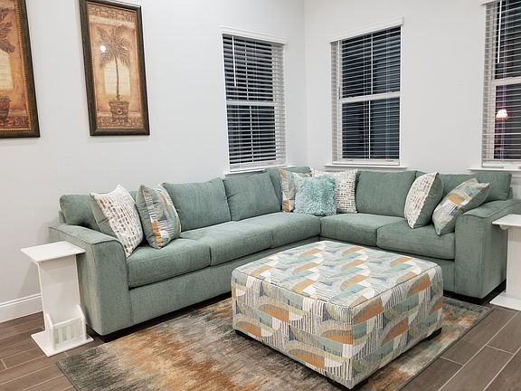 Furnished. Washer and dryer included. Kitchen includes Refrigerator, microwave, stove and dishwasher. LR with 75" Roku TV, master and 2nd BR have 43" TV, flex room has 32" TV. Garage parking plus assigned space outside.