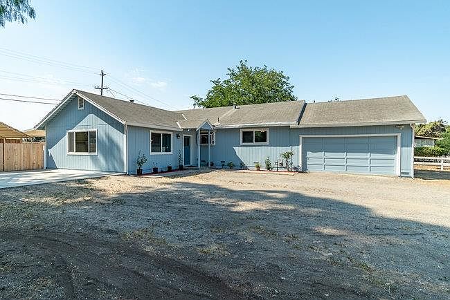 Home Sweet Home on a HUGE LOT in Tres Pinos. Charming 3 bed/2 bath 1,459 sf single story home with a 2 car garage and the lot is 14,492 sf. Room for everything! Really nice-sized living room with a wood burning stove and French doors that open to the large backyard. Kitchen is centrally located with double ovens and a beautiful bay window at the sink. The laundry/auxiliary room is conveniently located right off of the kitchen - has a sink and a large set of storage cabinets and also has a door that opens to the backyard which makes a nice place to remove your shoes/outerwear. Garage is good-sized with shelving. Two extra storage buildings in the back, one with a concrete pad. New windows. New siding on the house. Bring all the toys and the oversized vehicles. This place is a sweetheart and ready for a new family. Clean and spacious property, very well located.