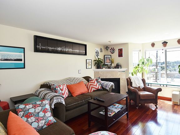 Urban living at its finest in this spacious townhouse in the heart of Greenwood. Entry, garage, and washer/dryer on bottom floor. Main level features gorgeous Brazilian rosewood floors, living room with gas fireplace, half bath, and open concept dining room and kitchen. All new stainless steel appliances in 2023. Upper level boasts a large master bedroom with double closets, full bath with skylight, and 2nd bedroom. Premium double cell cordless shades in both bedrooms provide insulation and peace of mind. Step outside into your private oasis with a fenced patio, garden beds and mature flowering tees.