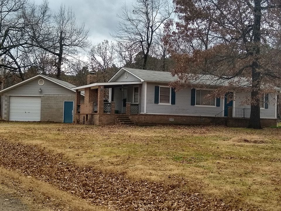 Wonderful 2 bedroom, 1 bath home. Built in smoker and grill on covered porch with a beautiful view of the lake. Detached garage/workshop. Hardwood flooring in all rooms except bedrooms. New carpet in master. Vacant and ready for new owner. Phone (479) 651-6649