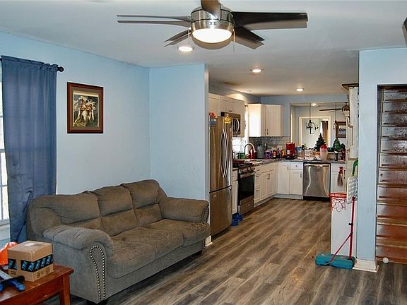 4 Bedroom, 3 Bath home conveniently located near shopping and restaurants.  Upon entering the front door you are greeted with a large living room which flows to the kitchen, dining room, and an addition used as the Master Bedroom. Main level has 3 Bedrooms and 2 full baths; Upper level has a 4th bedroom with a full bath and an office/rec room. There is a step in shower on each floor. Easy access to Barry Road or Hwy 152 for commuting. Across the street there is a coffee shop and public library.  Large fenced backyard. Side entrance garage to unfinished lower level. sqft per county, rm sizes rounded.